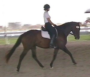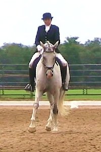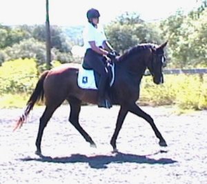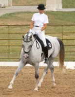 Titleist (’00 KWPN gelding, Idocus x Engendre) had his USDF Training level debut at the Topsider Farm Dressage II show on August 27, 2005 in College Station, TX. Titleist won all 3 of his classes, earning scores of 69.545%, 70.385%, and a 73.077%, which was the high score of the entire show! He is off to a good start towards earning a USDF Horse of the Year award. | ||||