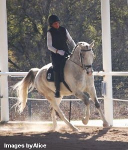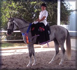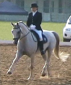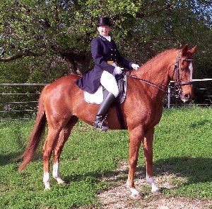 On June 21, 2008, Cean competed Wellspring (by Wellington/Nimmerdor) at another of the Central Texas Dressage Society's schooling dressage shows in Austin. This was a very large show, with 2 rings and 2 different USDF "L" Program graduates judging the competitions. Once again, Wellspring displayed her usual confidence and focus, performing two very nice steady Training level tests. She earned scores of 67% & 68% from each of the 2 judges. These scores also won both of her classes by at least 8% points over her next nearest competitors. So Wellspring is showing a lot of promise in the Dressage competition ring. Cean plans to begin Wellspring's USDF show career in 2009, and is starting to school First level with her at home. | ||||