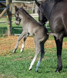 face, along with 1 white sock. This colt is going to be one VERY tall horse! | ||||