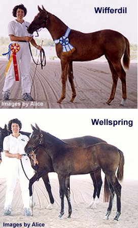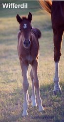 ![]() Top Flight Farms announces the birth of our two new Dutch Warmblood fillies this spring! Wifferdil (Wellington/Nimmerdor x Rock Bold) (the term wifferdil is "an energy gaining flight maneuver") on April 8, 2003 and Wellspring (Wellington/Nimmerdor x Ol Lady Express) on May 8, 2003. These are our first imported frozen semen foals, thanks to Dr. Nibblet at the Elgin Veterinary Clinic.The fillies' sire, Wellington, stood for many years in Holland at the VDL Stud, but passed away in 2000, so these fillies were conceived 2 years, and born 3 years, after the stallion had died! Both have outstanding conformation and movement, along with sweet temperaments. What more could we want? | ||||